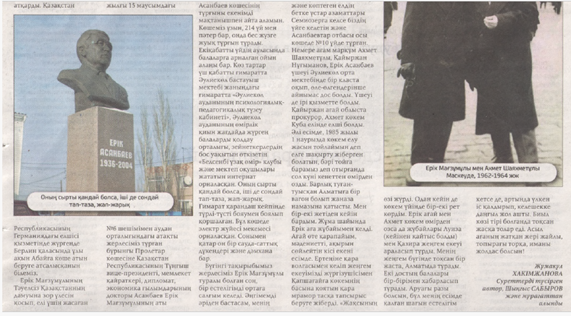 Хакімжанова, Жұмакүл. Тұңғыш Вице-президент [Мәтін] : Бірегей тұлға Ерік Мағзұмұлы өмірден ерте кетсе де, артында үлкен іс қалдырды / Жұмакүл Хакімжанова ; Суреттерді түсірген автор, Шыңғыс Сабыров және мұрағаттан алынды // Әулиекөл. – 2026. – 5 ақпан. – Б. 4.