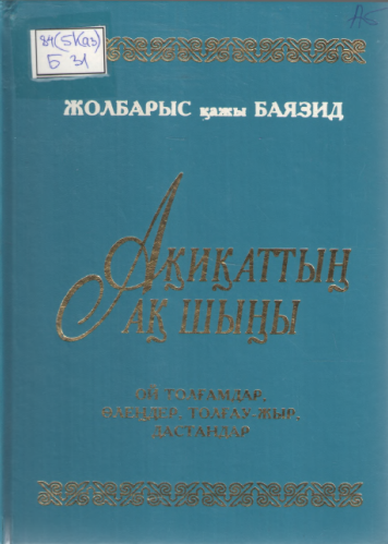 Баязид, Ж. Ақиқаттың ақ шыңы [Мәтін] : ой толғамдар, өлеңдер, толғау-жыр, дастандар / Ж. Баязид. - Қостанай : [Қостанай баспа үйі], 2008. - 580 б. Автордың Мекка мен Мәдинаға барған үш мәрте қажылық сапары әсерімен ислам рухын жырмен өріп, адамның Алла алдындағы адалдығы, дін, мұсылман, парыз жайлы толғамды ойлары жырға айналған. |